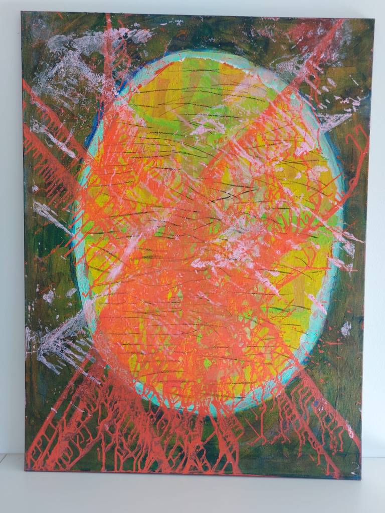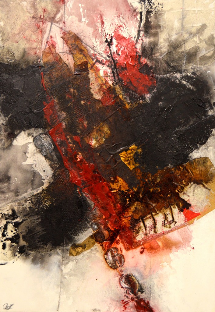 In vielfacher Form macht der Treuchtlinger Künstler Energie in Bildern und Objekten sichtbar. Auf seinen rot-schwarzen Acrylbildern kann man sie vielfältig erkennen: ein Inferno mit vulkanischen Eruptionen, blitzartigen Entladungen von explosiver Kraft.