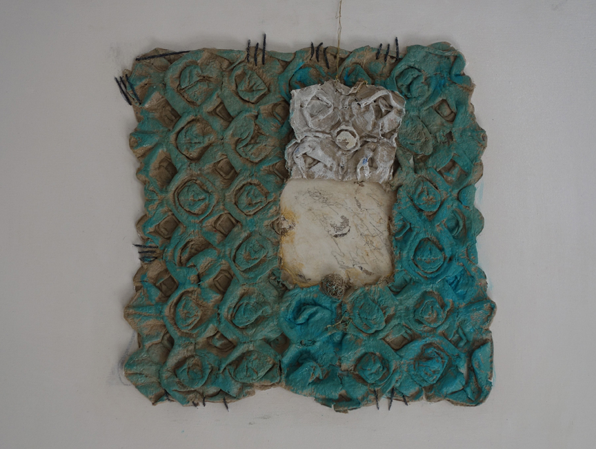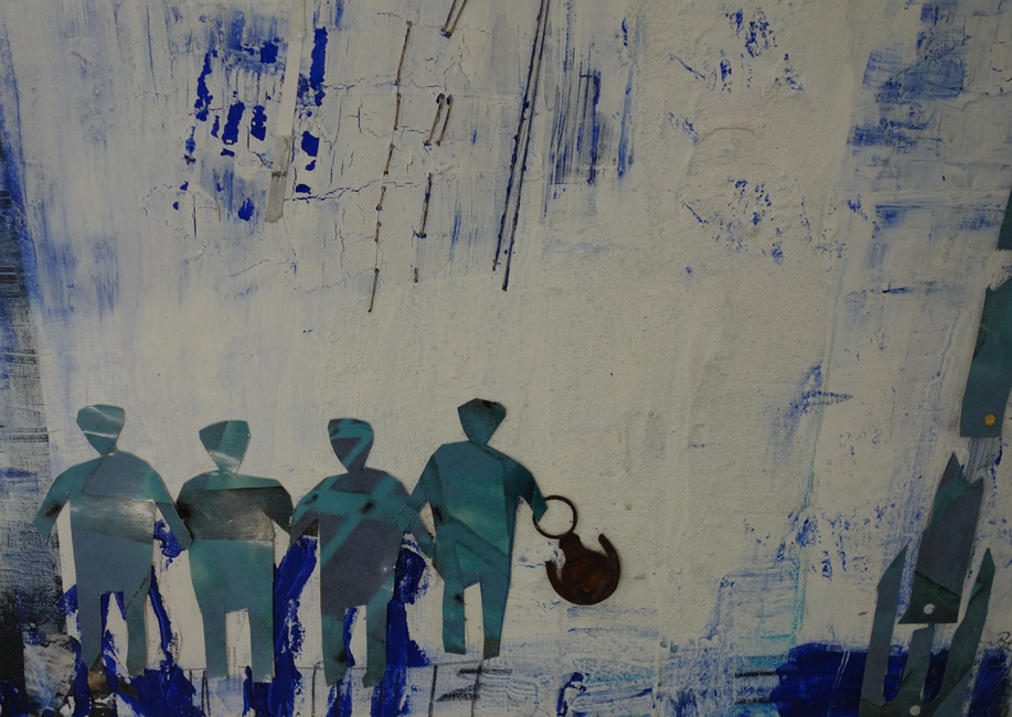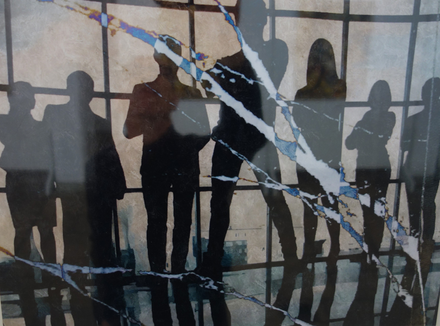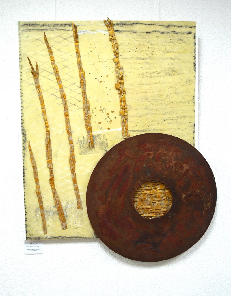 Vergänglichkeit ist auch das Thema von Sabine Nollek. Fotografie, Druck und Materialcollage sind die Medien, die sie als Basis für ihre künstlerische Auseinandersetzung braucht. Mit Überlagerungen von Bildelementen lässt sie neue Gestaltungsebenen entstehen, was überaus interessant und spannend wirkt.