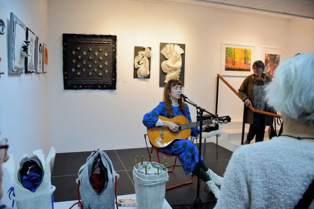Den musikalischen Part hatte anlässlich der Vernissage in Anwesenheit vieler Kunstfreunde aus der Region die Sängerin Chantal Fatale übernommen. Die Liedermacherin besingt nach spontanen Eingaben das Leben im Allgemeinen und im Besonderen. Es sind meist kuriose Begebenheiten, die ihr spontan in den Sinn kommen.