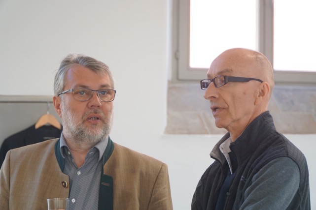 Vorsitzender Klaus Seeger vom Kunstforum Fränkisches Seenland stellte die Akteure vor und sie selbst äußerten sich zu ihren Arbeiten und zu ihrem künstlerischen Selbstverständnis. Tina Bönsch, Gerhard Engerer und Bärbel Langowski-Tafferner aus Dinkelsbühl, Heli Feuchtenberger aus Treuchtlingen, Willi Halbritter aus Ellingen, Margot Krug aus Gunzenhausen und Gerhard Postler aus Gunzenhausen haben einen ausrangierten Zigarettenautomaten mit kleinen, aber feinen Kunstwerken bestückt. Es geht ihnen um Kunst zum Mitnehmen – spontan und unkompliziert, um „Kunst in der Schachtel“ eben. Der erste Automat hängt im Spitalhof in Dinkelsbühl und erfreut sich – so Klaus Seeger – größter Beliebtheit. Wer fünf Euro „einwirft“, der bekommt eine künstlerisch gestaltete Zigarettenschachtel mit einem Minibild sowie einer Vita von einem der Künstlerinnen und Künstler.