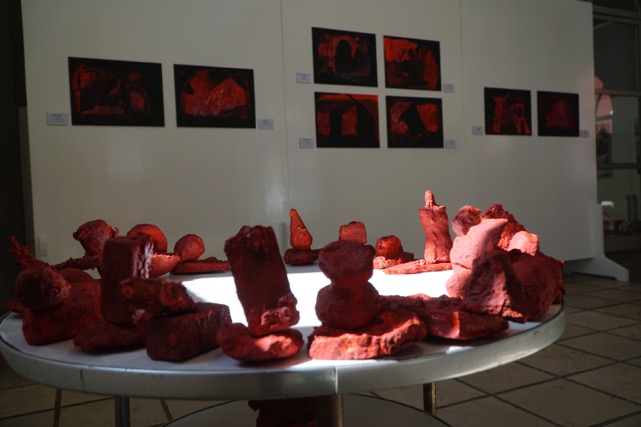 Schon im Eingangsbereich sieht man sie: rot leuchtende Objekte, die nicht eindeutig zu definieren sind. Heli Alberti, der Feuchtenberger, sieht seine Kreationen als mystische Darstellung von Energien.